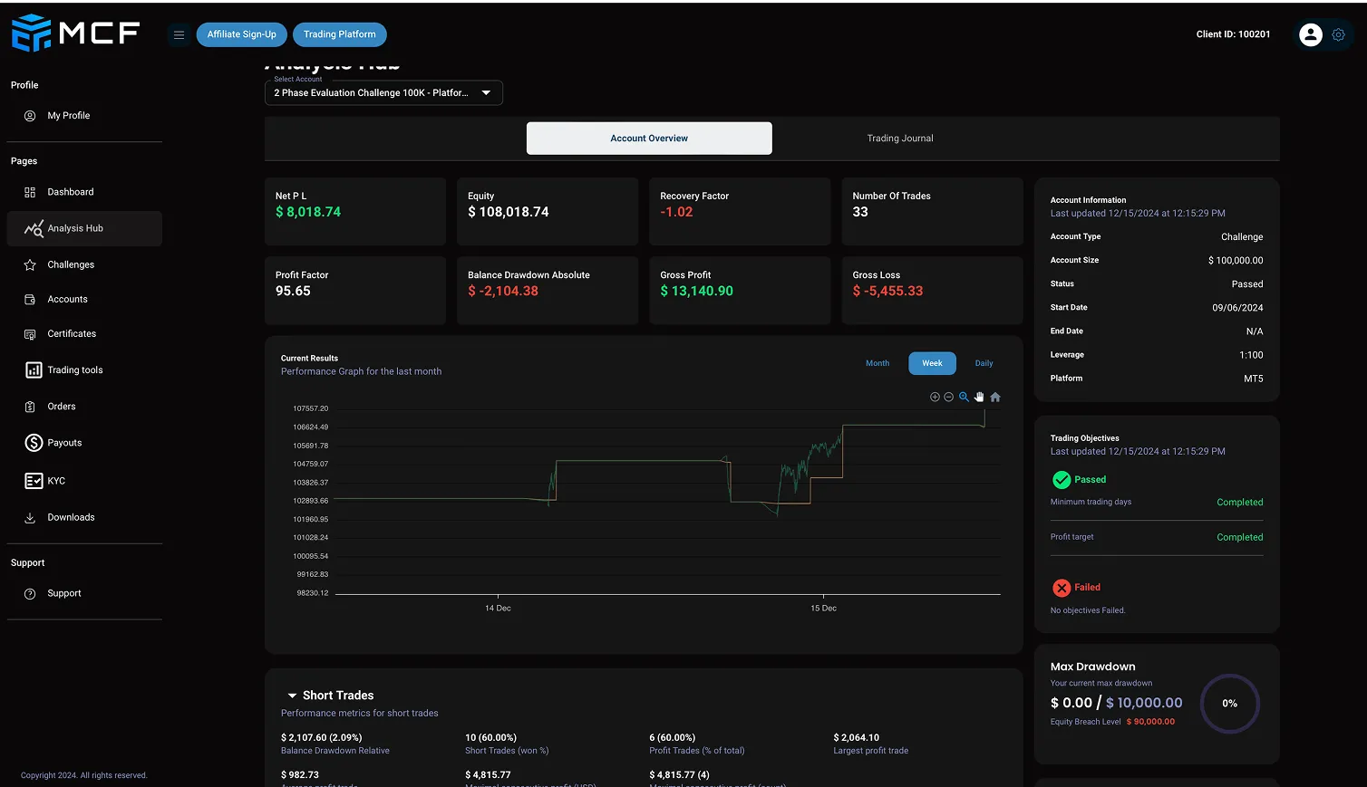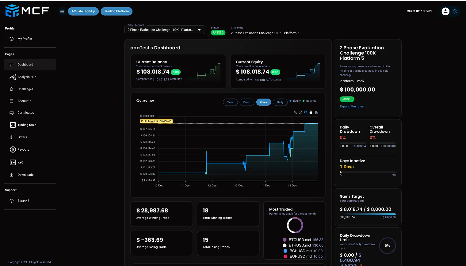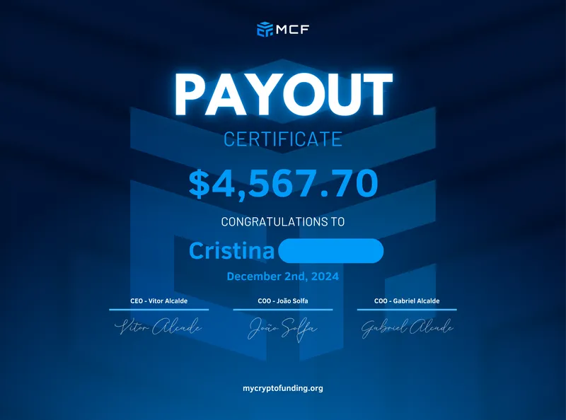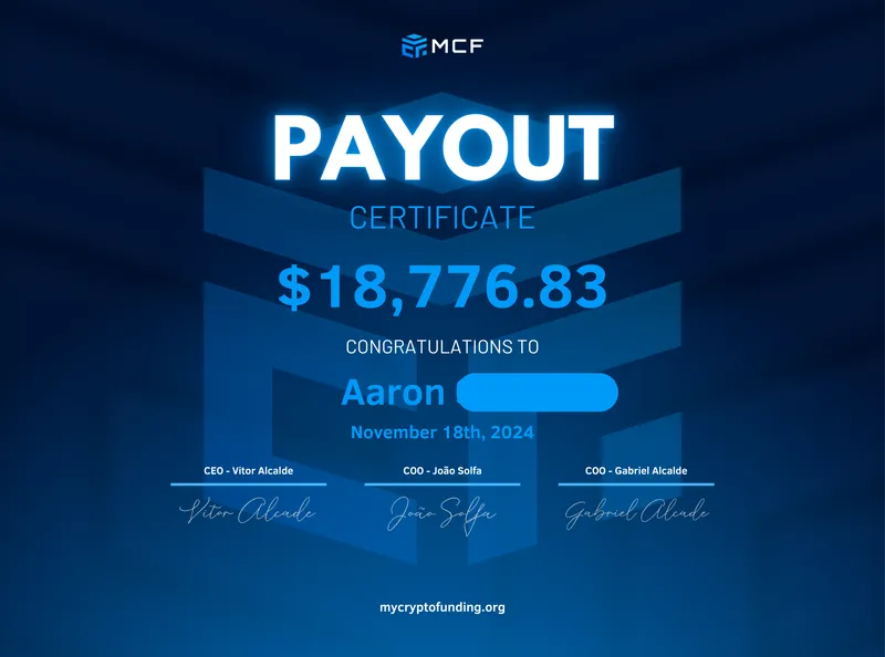 The Confirmation provides an opportunity to establish a solid trading track record and make a final demonstration of your abilities. With all the same institutional trading conditions available, focus on achieving a 5% profit target. Successfully completing this phase certifies you as an MCF Funded Crypto Trader, showcasing your trading skills and readiness to excel at one of the top crypto prop firm in the market.