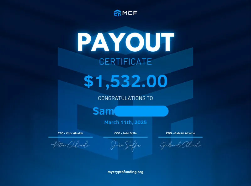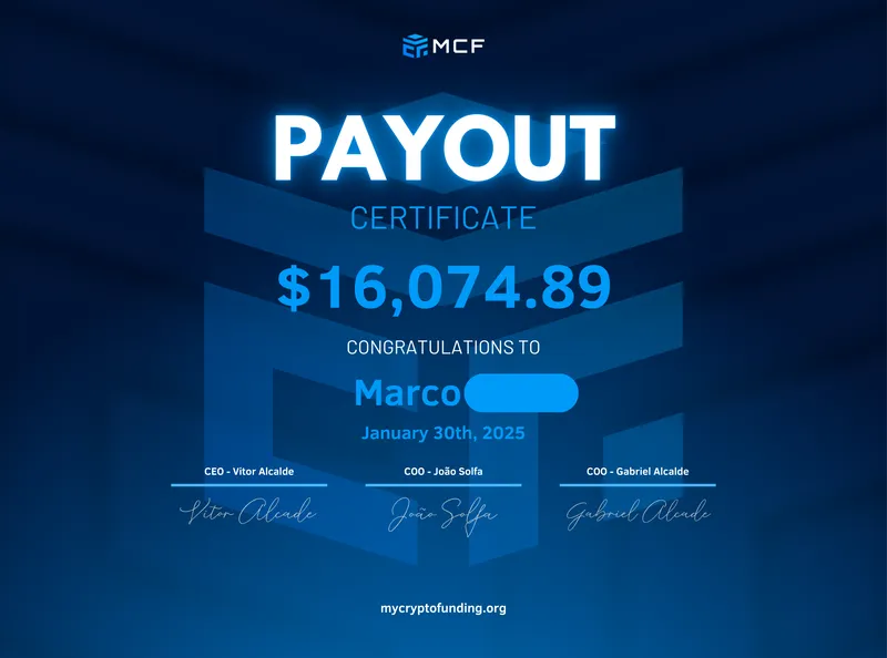 After successfully passing the challenge, you become an MCF Funded Trader, trading real capital with zero personal risk. Enjoy up to 100% profit split, lightning-fast execution, and institutional-grade conditions with high leverage. With no profit cap and unlimited trading days, you’re empowered to grow your account and trade like a professional, backed by the best crypto prop firm in the world.